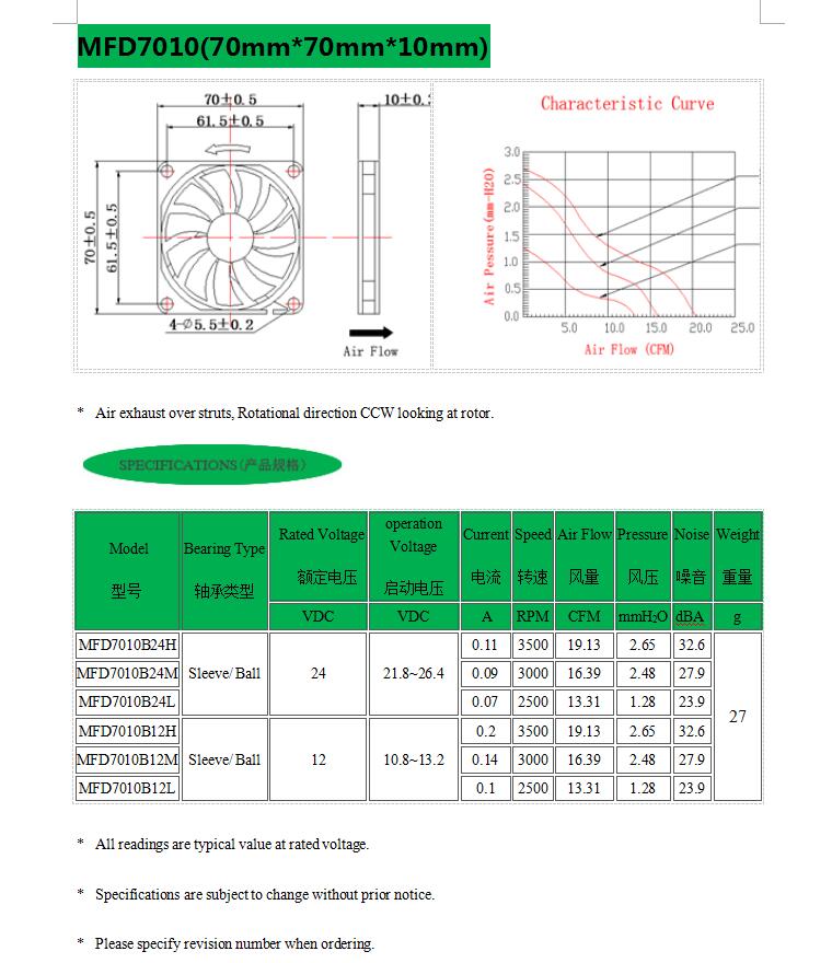 7010直流散热风扇